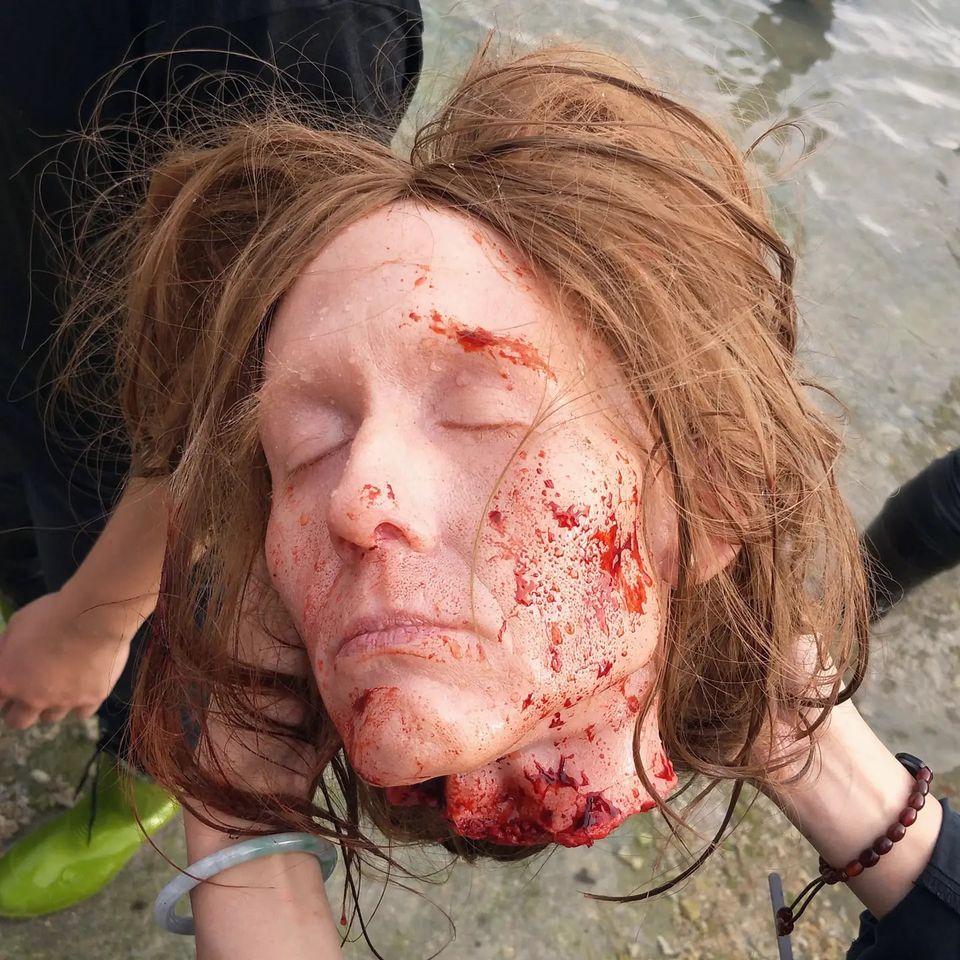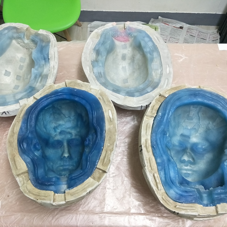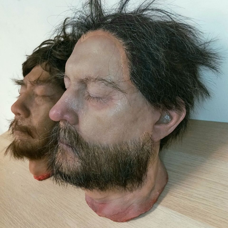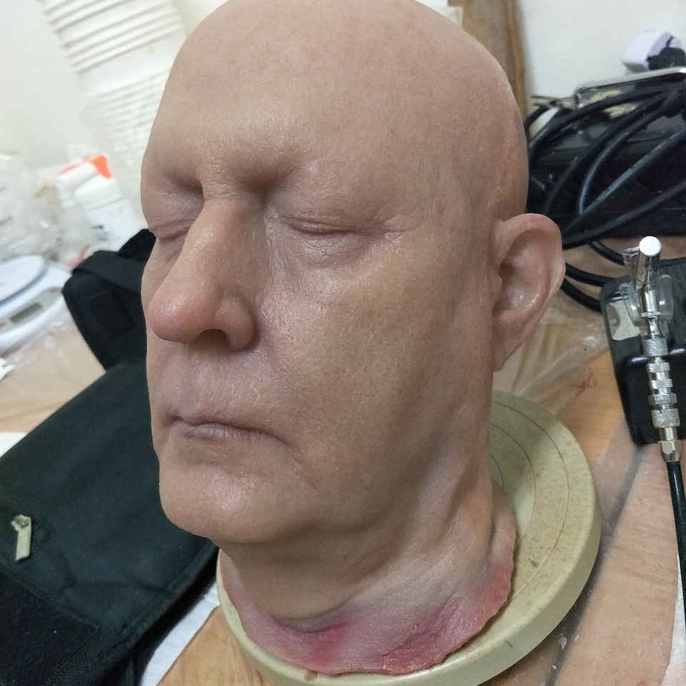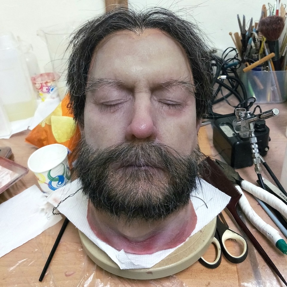 無論是調整細部表情線條、雕塑頸椎第二節砍下的斷面細節、一層層的堆疊顏色、小心地一根根植入毛髮,都是為了讓畫面呈現最好的效果,讓我們給團隊一個掌聲